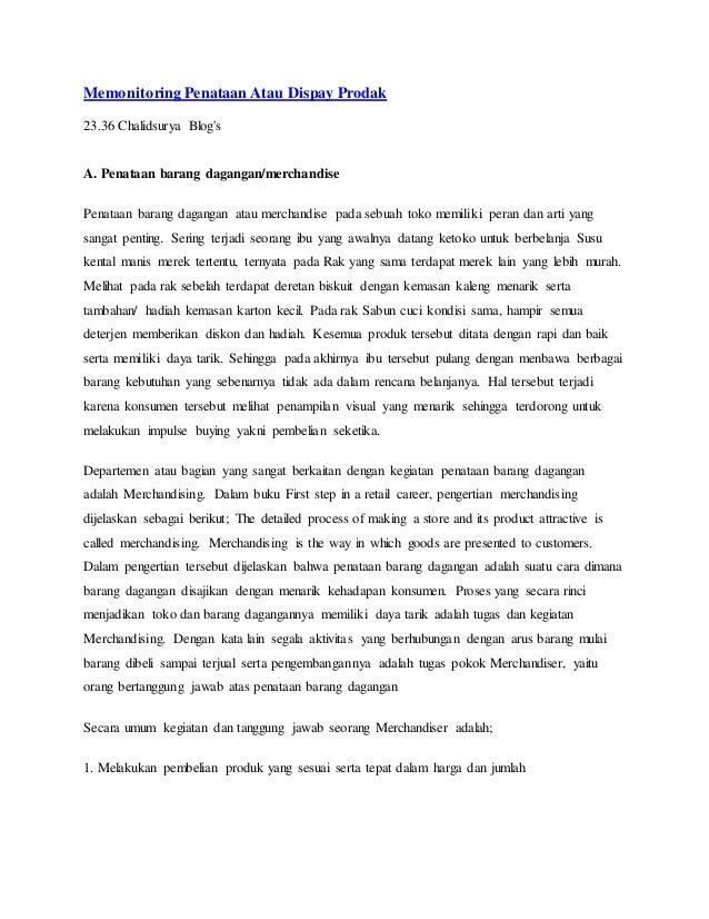 Memonitoring Penataan Atau Dispay Prodak