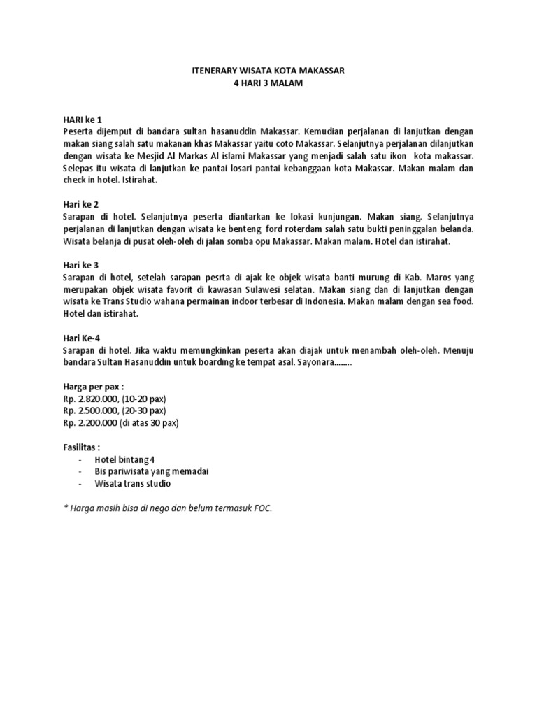 Itenerary Wisata Kota Makassar