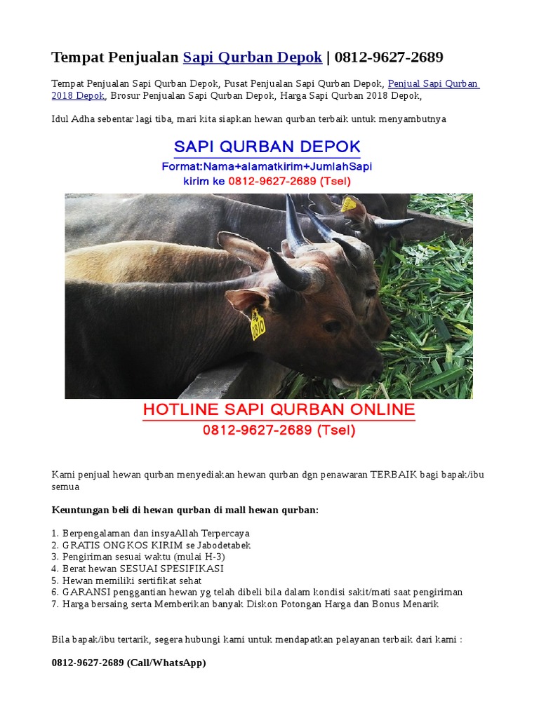 Tempat Penjualan Sapi Qurban Depok 0812 9627 2689