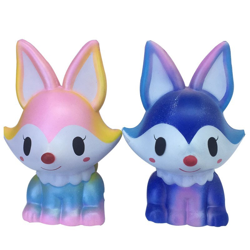 13cm Kawaii Cute Rainbow Fox Squishy Jumbo Cartoon Slow Rising Phone Strap Soft