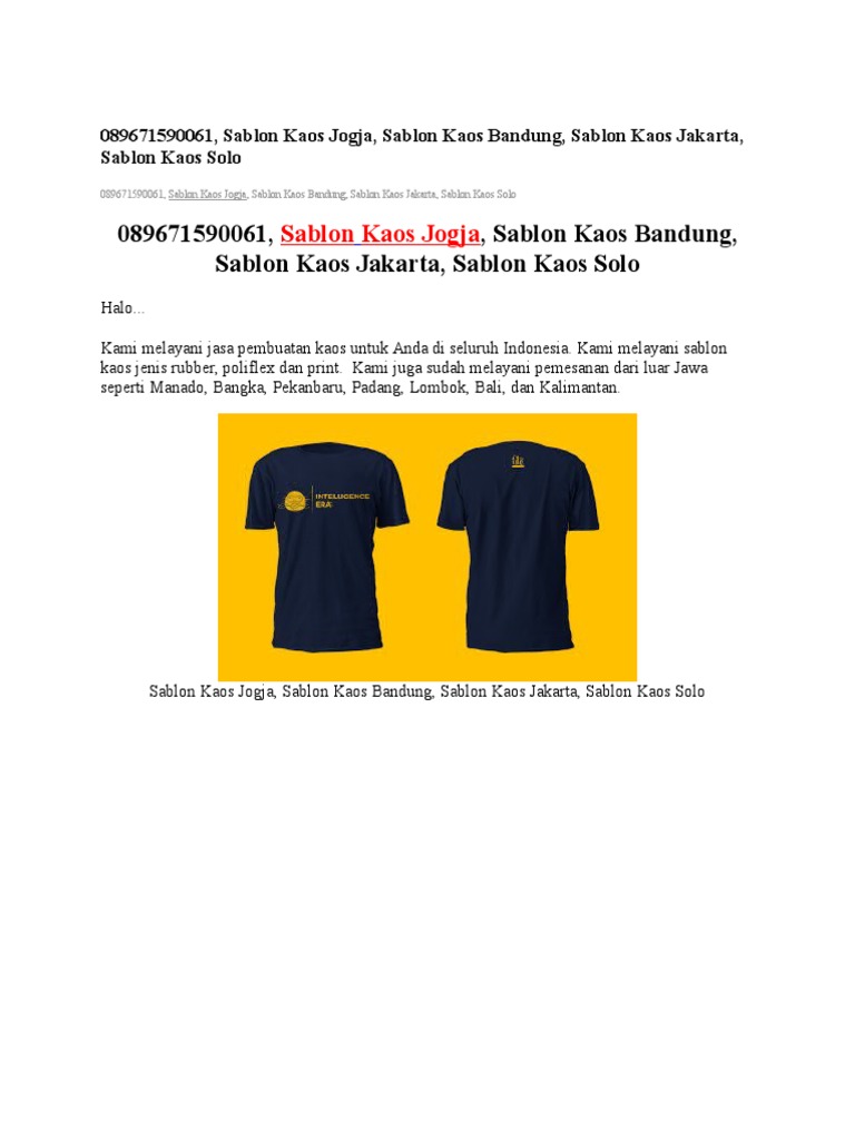 089671590061 Sablon Kaos Jogja Sablon Kaos Bandung Sablon